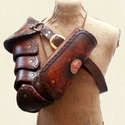 The arm piece is made up of segmented panels from shoulder to vambrace which features a moulded elbow. Designed especially for maximum flexibility while fighting, our Gladiator armour will not impede you in combat.