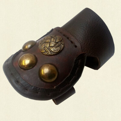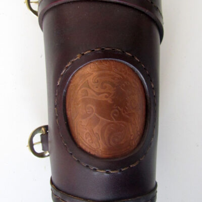 Hand crafted from 2.5mm thick vegetable tanned leather. Each scale is 30mm by 60mm in size and has been hand dyed and riveted to 3mm moulded veg tan leather.
