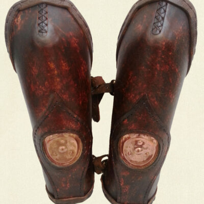 These Vambraces are designed to protect the elbow joint as well as the firearm and have been hand crafted from two layers of 3mm thick vegetable tanned leather which have been moulded and dyed by hand. Finished with antiqued brass buckles and hand stitched edging.